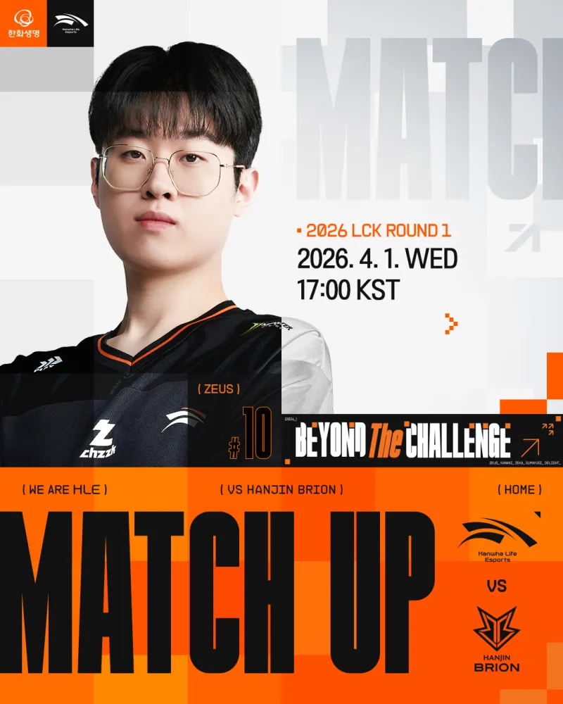 虎扑04月01日讯 HLE发布对阵BRO赛前海报,配文如下:HLE发动机启动!来源:X...